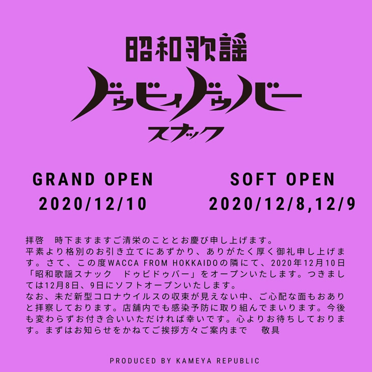 店名である『wacca』の意味は2つあります。1つはアイヌ民族の言葉で真水、水が湧くところ、泉などの意味を持ちます。生活の根源となる水はとても大切な存在です。2つ目は、輪っかの意味です。人と人とのつながりを大事に輪を作れたらと願いを込めました。店内で食をともにし、出逢ったばかりのはじめましての方々ともお話ししてみてはいかがでしょうか。