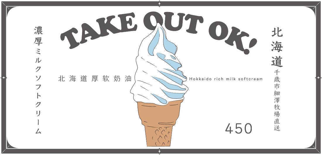 北海道千歳市・細澤牧場から直送の、新鮮で濃厚なミルクを使ったソフトクリームをご用意しています。北の大地で育まれた特別な風味は、お子さまにはもちろん大人の方にもきっとご満足いただける、そんなひと品に仕上がりました。
